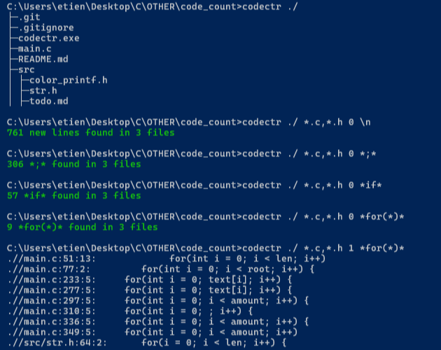 List files, filter search and count lines , specific symbols or text patterns inside files.