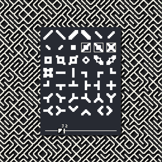 A simple interactive re-creation of the 10print algorithm ( 10print.org ) with some additional features: more tiles to choose from and generation speed control.
